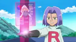 In Master Class Is in Session!, James first appeared praising Jessie, who had entered the Gloire City Pokémon Showcase Master Class, as the future Kalos Queen. He seemed visibly excited just before the first round of Master Class, claiming that they could successfully return to the life of crime if Jessie managed to win this. He, time and again, cheered Jessilee from the sidelines during her performances, causing his neighbors to be bothered. When the Master Class was over, he, along with Meowth, Inkay, Gourgeist and Wobbuffet, were seen walking behind a silent Jessie through Gloire City, fearing her wrath on losing. However, she shrugged their fears and decided that she just wanted to give them a feast for supporting her, which causes them to be overjoyed and jump over her; Jessie then angrily declared that the feast shall be financed by James, something James readily accepted.