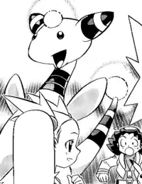Amphy was first seen with Jasmine as she escaped the Ecruteak City earthquake by hiding in the Bell Tower. With Silver and Gold's help, Amphy got Jasmine to safety. | ||