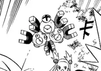 | These two Magneton were seen accompanying Jasmine through Ecruteak City. They, along with their Trainer, were caught in the earthquake that ravaged the entire area. At the Pokémon League, they were seen among Jasmine's team as she decided what to choose for her battle with Brock but were not picked.