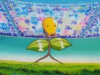 Ash next chose to use Pikachu, which attempted to use its Electric attacks on Bellsprout. After dodging Pikachu's Thunder Shock, Bellsprout was hit by a Thunderbolt, but the Flower Pokémon simply used its legs as small lightning rods, conducting the electricity to the ground and leaving Bellsprout itself undamaged. Soon after Bellsprout took Pikachu out with a slam to the Electric Mouse Pokémon's head. Now Ash had only one Pokémon left—Muk. The Sludge Pokémon proved to be too tough for Bellsprout, as all of its attacks simply bounced off from Muk's slimy body, leaving Muk undamaged. Ash then had Muk use Body Slam, trapping Bellsprout under the Sludge Pokémon's poisonous body, and Bellsprout was finally defeated. It reappeared in flashbacks in Friends to the End and Bulbasaur... the Ambassador!. Bellsprout's known moves are Slam and Razor Leaf. | ||