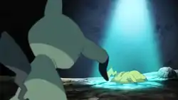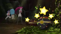 In A Plethora of Pikachu!, Jessie revealed a variation she named (Japanese: 全力キープ Full-Force Keep). If she doesn't finish the pose for Let's Snuggle Forever, Mimikyu will not begin attacking. If it stays in this state for long enough, the hot air produced inside its rags will allow Mimikyu to float. Team Rocket used this discovery to steal as many Pikachu from the Pikachu Valley inside its rags, but Mimikyu was stopped by Pikala and the Boss. | |||