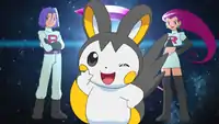 After Iris got into a disagreement with Emolga, Emolga flew off and landed where Team Rocket was. When she defeated their Woobat, Yamask, Amoonguss, and Frillish, Team Rocket got her into joining them. With Emolga on their side, they were able to get Axew. However, during a fight with Ash and his friends, Emolga accidentally woke up an Exploud which went on a rampage. After Meowth learned she was only pretending to join, they had the same Exploud fought her and Axew while inside a giant box but Dragonite and Charizard were able to free them after many tries. After Iris made up with Emolga, Emolga was able to return to her. | ||
