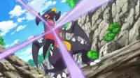 Meowth turns on guidance waves in the mecha to force Garchomp under their control while James attempted to Mega Evolve her. The process was slow as Garchomp's memories of her time as a Gible and Gabite blocked the waves from controlling her. Professor Sycamore was able to find Garchomp in time even though Meowth turned up the waves to get Garchomp to listen to Team Rocket. Attempting for Garchomp to return to Professor Sycamore with the Mega Stone he borrowed from Blaziken Mask he and James at the same time Mega Evolve Garchomp. Garchomp Mega Evolved but only under Sycamore's command. Garchomp's known moves are Hyper Beam, Slash, Dragon Claw, Dragon Pulse, and Dragon Rage. | ||