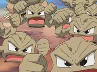 | Ash and his friends first encountered Geodude after Corphish's and Squirtle's fighting accidentally woke them up. They later participated in trapping Ash's friends. After King Onix was defeated by Ash's Grovyle, they turned away from Team Rocket and worked with Ash and his friends to defeat them. | ||