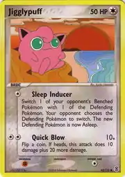 Jigglypuff (Japanese: プリン Purin) is a Colorless-type Basic Pokémon card. It is part of the EX FireRed & LeafGreen expansion.