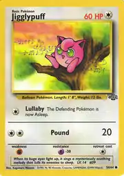 Jigglypuff (Japanese: プリン Purin) is a Colorless-type Basic Pokémon card. It was first released as part of the Jungle expansion.