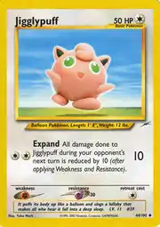 Jigglypuff (Japanese: プリン Purin) is a Colorless-type Basic Pokémon card. It is part of the Neo Destiny expansion.