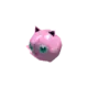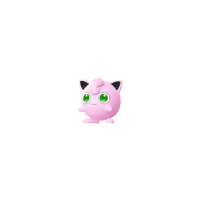 Jigglypuff is a pink Pokémon with a spherical body. It has pointed ears with black insides and large, blue eyes. It has small, stubby arms and slightly longer feet. On top of its head is a curled tuft of fur. Its body is filled with air and, as seen in Pokémon Stadium, Jigglypuff can deflate until it is flat. It is able to float by drawing extra air into its body, as demonstrated in Super Smash Bros.