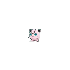 Jigglypuff can use its eyes to mesmerize opponents. It has a large lung capacity, exceeding most other Pokémon. Once it has an opponent's attention, Jigglypuff will inflate its lungs and begin to sing a soothing and mysterious lullaby. This melody can cause anyone who listens to become sleepy. If the opponent resists falling asleep, Jigglypuff will endanger its own life by continuing to sing until it runs out of air. It will continue to sing until the opponent is asleep. It is able to adjust the wavelength of its voice to match the brain waves of someone in a deep sleep. This helps ensure drowsiness in its opponents. Its vocal range exceeds 12 octaves, but its skill depends on the individual. Its song varies by region, and in some areas, it sounds like shouting. Jigglypuff can mostly be found in lush green plains and grassy meadows.