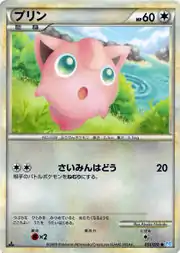 Jigglypuff (Japanese: プリン Purin) is a Colorless-type Basic Pokémon card. It is part of the HeartGold & SoulSilver expansion.