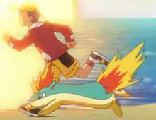 Jimmy's Typhlosion (Japanese: ケンタのバクフーン Kenta's Bakphoon) was Jimmy's starter Pokémon, given to him as a Cyndaquil by Professor Elm.