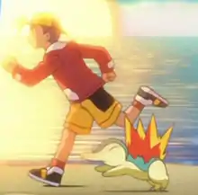 Typhlosion was Jimmy's starter Pokémon, given to him as a Cyndaquil by Professor Elm. He obtained it on the same day that Vincent got his Chikorita and Marina received her Totodile. Jimmy and Typhlosion are very close to each other. | ||