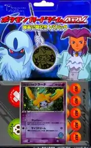 The Movie Commemoration VS Pack (Japanese: 映画公開記念VSパック) was made available on July 19, 2003 in celebration of the cinema release of Jirachi: Wish Maker. The half deck features a variety of Pokémon that are native to Forina, the main setting of the movie, and some Pokémon belonging to Butler, the main antagonist. The half deck also comes with a special Jirachi coin and a set of damage and status counters.