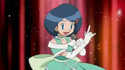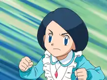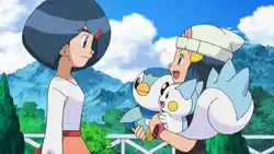 In Battling a Cute Drama!, Dawn, Ash, and Brock received cold-weather outfits for the area surrounding Snowpoint City from her.