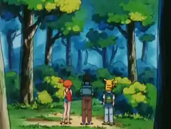 Route 33 appeared in Good 'Quil Hunting, where Ash and his friends were seen traveling through the forested route on their way to Azalea Town. Along the way, they encountered a Trainer named Koji, who was looking for a Cyndaquil. The idea of catching a Cyndaquil excited Ash enough for him to start looking for one as well. He eventually found one, and soon ended up catching it in order to protect it from the explosion of Team Rocket's mecha.
