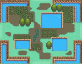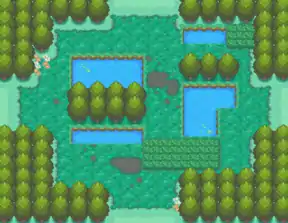 - A graphical glitch occurs in the Swamp area. Four tiles at the top of the grassy patch appear to be empty at first, but when the player (or their partner Pokémon) walks over the tiles, tall grass will appear underfoot.
