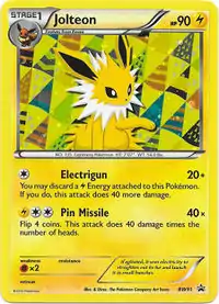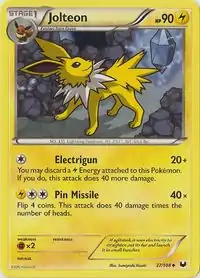 Jolteon (Japanese: サンダース Thunders) is a Lightning-type Stage 1 Pokémon card. It was first released as part of the Dark Explorers expansion.