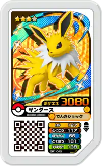 Jolteon (Japanese: サンダース Thunders) is a Grade 3 Pokémon Ga-Olé disk. It is part of the first Grand Rush set.