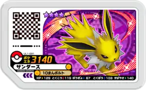 Jolteon (Japanese: サンダース Thunders) is a Grade 4 Pokémon Ga-Olé disk. It is part of the first Ultra Legend set.