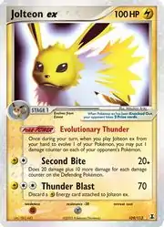 Jolteon ex (Japanese: サンダース ex Thunders ex) is a Lightning-type Stage 1 Pokémon-ex card. It is part of the EX Delta Species expansion.