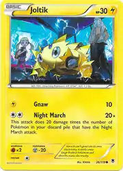 Joltik (Japanese: バチュル Bachuru) is a Lightning-type Basic Pokémon card. It was first released as part of the Phantom Forces expansion.