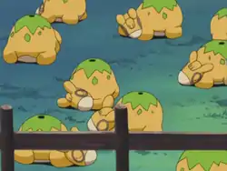 When Julie first met Ash and his friends, she found a missing Numel of hers. She then revealed that she owns a ranch full of Numel. One of her Numel that was missing was slower than the other Numel. When the Numel were caught by Team Rocket, the slow, dopey Numel tried to get over its speed problem with some support from May and her Skitty to escape from Team Rocket's mecha. The dopey Numel attacking caused the other ones to join in and they were able to penetrate Team Rocket's mecha, thus finally escaping from it. Numel's known moves are Tackle and Flamethrower. | ||