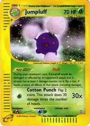Jumpluff (Japanese: ワタッコ Watacco) is a Grass-type Stage 2 Pokémon card. It is part of the Aquapolis expansion.