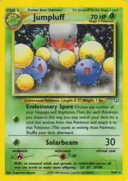 Jumpluff (Japanese: ワタッコ Watacco) is a Grass-type Stage 2 Pokémon card. It is part of the Neo Revelation expansion.