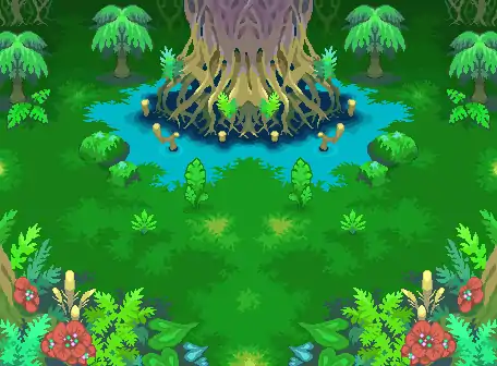 | Description: | Deep in this overgrown tropical area live many Grass-type Pokémon. The swampy ground is rich in nutrients. | |||
