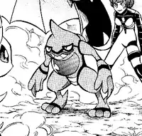 | Crobat is Jupiter's main Pokémon. It first appeared as a Golbat when it partnered up with Toxicroak in a Double Battle against Mitsumi's Infernape and Leafeon. This battle continued in Challenge!! The Fortress of Steel as Golbat was the only one left on her side as Toxicroak got taken out. During the midst of their battle after Jun's arrival. Jupiter flees on her Golbat while Saturn flees on his. Sometime before A Novel Test!!, her Golbat ended up evolving into a Crobat. In that same chapter, it battled with Mitsumi's Milotic. Jupiter decides to take advantage of the battle by mentioning about Mitsumi's past. Crobat reappeared during the Spear Pillar arc. During the first part of that arc, it battled Jun's Dragonite but the battle was stopped as Dialga's Roar of Time activated. It last appeared when Hareta and the others took on Charon.