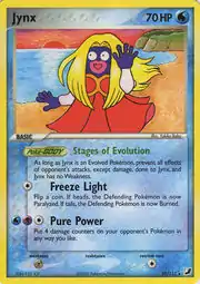 Jynx (Japanese: カポエラー Rougela) is a Water-type Basic Pokémon card. It is part of the EX Unseen Forces expansion.
