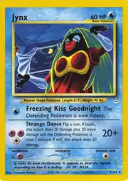 Jynx (Japanese: ルージュラ Rougela) is a Water-type Basic Pokémon card. It is part of the Neo Revelation expansion.