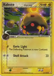 Kabuto δ (Japanese: カブト δ Kabuto δ) is a Lightning-type Stage 1 Pokémon card. It is part of the EX Holon Phantoms expansion.