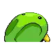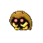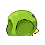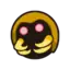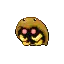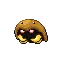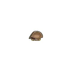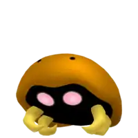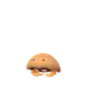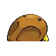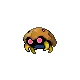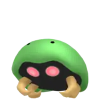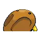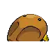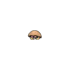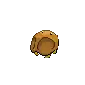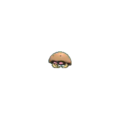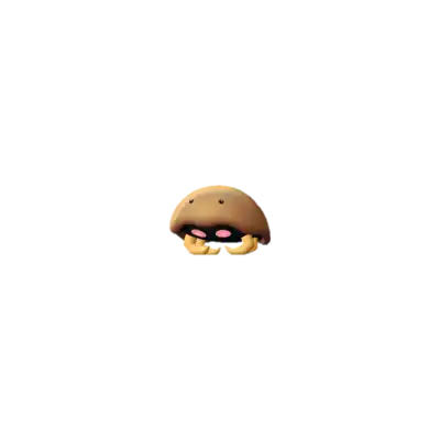 Kabuto is a small Pokémon resembling a horseshoe crab. It is mostly flat with a protective, brown shell covering its body. There are two small, black eyes on top of its shell, which it uses for sight when it hides on the ocean floor. Underneath the shell is a black space that hides the structure of its main body. Only its four short, yellow legs and a second pair of luminescent red eyes are visible on its underside. In its original time, Kabuto was prominently found on beaches, likely aided by its fast and powerful swimming ability. While it is commonly believed to be extinct, isolated populations of Kabuto have been unchanged for 300 million years.