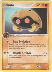 Kabuto (Japanese: カブト Kabuto) is a Fighting-type Stage 1 Pokémon card. It is part of the EX Power Keepers expansion.