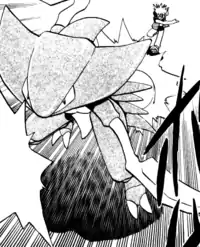 In Capital Kabutops, Brock was revealed to have a Kabutops in his team. He explained that he met Kabutops as a Kabuto at the Pewter Museum of Science when Pewter City was invaded during the Yellow chapter, and had since then become a powerful fighter, employing ancient attacks. It briefly battled Jasmine's Ampharos, Amphy, at the Gym Leader tournament at Indigo Plateau, but both Trainers soon swapped their Pokémon.