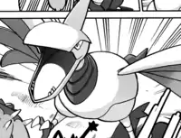 | Skarmory is Kahili's third known Pokémon. It was first used to keep its Trainer in the air above the Ruins of Life, allowing her to golf Oricorio's Poké Ball over to Sun. Later, it was used to battle Tapu Lele alongside Sun, Moon, and Kiawe's Pokémon. Despite their combined strength, the guardian deity proved to be too powerful until Dollar evolved into a Torracat.
