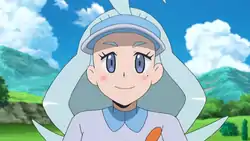 In Flash and Cosmog's Secret, Kahili and the others met at Mallow's family restaurant, where they talked to Professor Kukui's wife, Professor Burnet, over a video phone about the Ultra Wormholes appearing around Alola. While the others decided to investigate the situation, Kahili went back to Melemele to report what she learned to Hala.