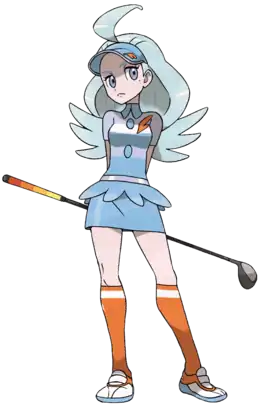 In Pokémon Ultra Sun and Ultra Moon, she also briefly appears on Ten Carat Hill after the player picks up the Flyinium Z, demonstrating the pose needed to perform Supersonic Skystrike.