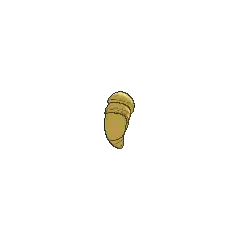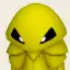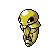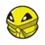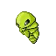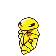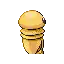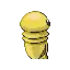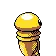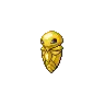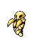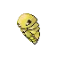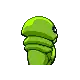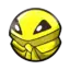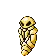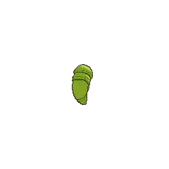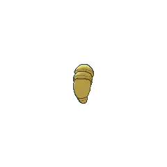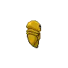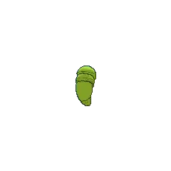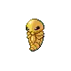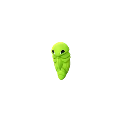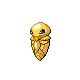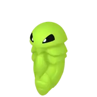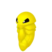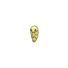 Kakuna is a yellow, cocoon-like Pokémon. Kakuna has a dome-shaped head and black, triangular eyes with glowing white pupils. It has two scythe-like arms in the middle of its body. When it comes close to evolving, its body gives off heat that makes it warm to the touch. Kakuna remains virtually immobile and waits for evolution, often hanging from tree branches by long strands of silk. When attacked, however, it can extend its poison barbs. Kakuna nests in temperate forests and misty wooded areas. Occasionally, it will also nest at the mouth of tunnels and caves, as seen in Pokémon Snap.