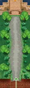 Route 1 is a straight paved pathway, lined with trees and shrubbery. It is impossible for players to venture off the pathway.