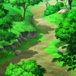 After the town is yet another forested path, as shown in A Stealthy Challenge!, where Ash and his friends met up with Sanpei again. A river is also located within the forest. The Baa de Mer Ranch is located just beyond the forest, appearing in A Race for Home!.