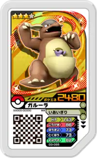 Kangaskhan (Japanese: ガルーラ Garura) is a Grade 3 Pokémon Ga-Olé disk. It is part of the third Dash set.