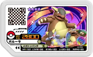 Kangaskhan (Japanese: ガルーラ Garura) is a Grade 4 Pokémon Ga-Olé disk. It is part of the third Dash set.