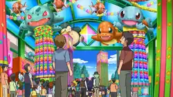 One of the Kanto Fair's main attractions is an open-air market filled with decorations depicting Pokémon from the Kanto region. One of the vendors is the Magikarp salesman.
