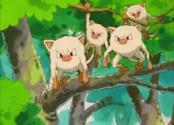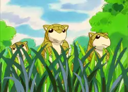 As the Spearow chased Ash and Pikachu, two herds of Pokémon that do not appear on this route in the games were seen: Mankey and Sandshrew.