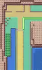 At the northern end of the bridge, the route opens up at a virtual three-way intersection. To the west is a long, narrow strip of land that contains Route 24's lone patch of grass containing a Trainer and wild Pokémon. This location also serves as the docking platform for a water body that leads to an otherwise inaccessible portion of Route 4, as well as Cerulean Cave northwest of Cerulean.