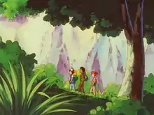 Route 3 appeared in Gyarados Splashes In!. Red first encountered Misty on this route, fighting a rampaging Gyarados. With the help of Red's Saur, the Gyarados was stopped and eventually caught by Red. Afterwards, Misty told Red that the Gyarados was actually hers, having gone missing some time earlier and returned raging mad.