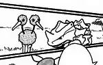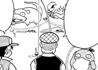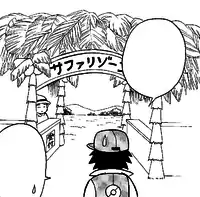 The Safari Zone appeared in Long Live the Nidoking! and A Hollow Victreebel, where Red visited it. Like all visitors, Red was forced to leave his Pokémon and Poké Balls to the entrance before starting his tour. Guided by two robotic Pidgey called Pidgebots, Red started a ride on a raft in a river running through the Safari Zone. When he noticed two Nidoking fighting over the love of a Nidoqueen, Red secretly pulled out a Poké Ball he had smuggled in and tried to catch one of the Nidoking with it. However, the ball missed the Nidoking and caught Nidoqueen instead. Enraged by this, the two Nidoking attacked Red's raft, destroying it and one of the Pidgebots.