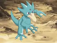| Katie's Golduck was seen in the battle against Ash. Using its Water-type attacks, it was able to defeat Torkoal and was then recalled. Later, it battled Ash's Corphish and confused it with its Confusion, but eventually lost to a combination of Vise Grip and Bubble Beam.